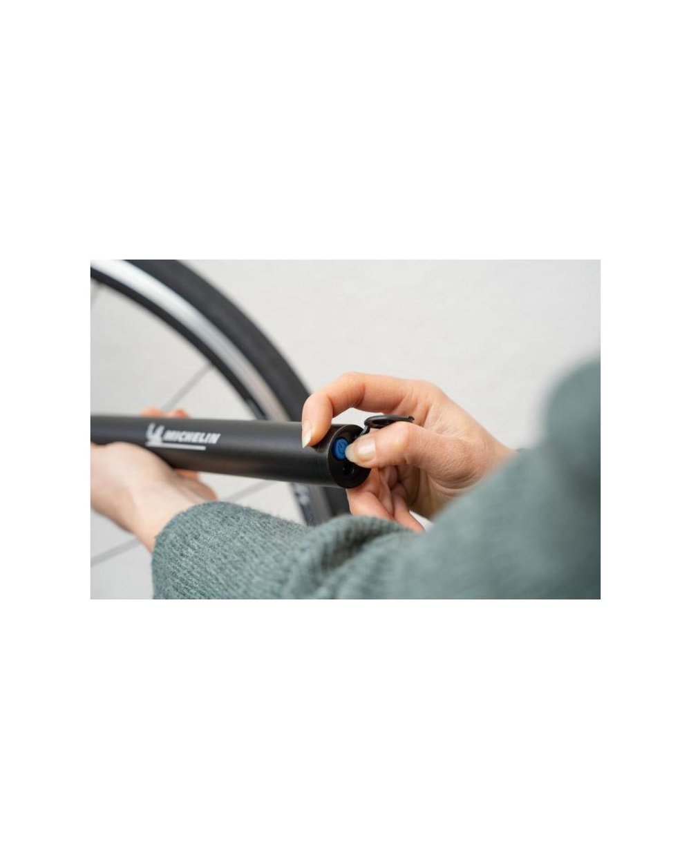 Cu pompa de aer cu baterie analogică de la Michelin, pot fi umflate până la 8 anvelope de bicicletă cu o singură încărcare a bateriei.