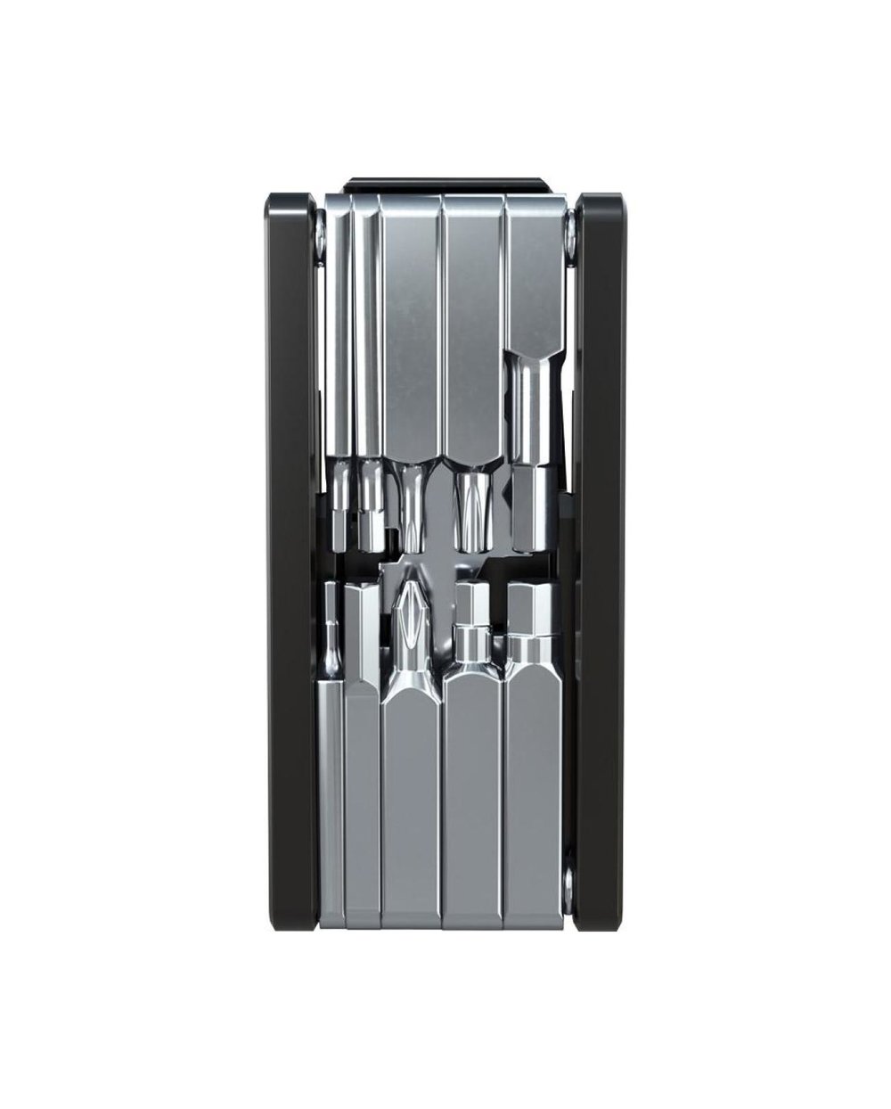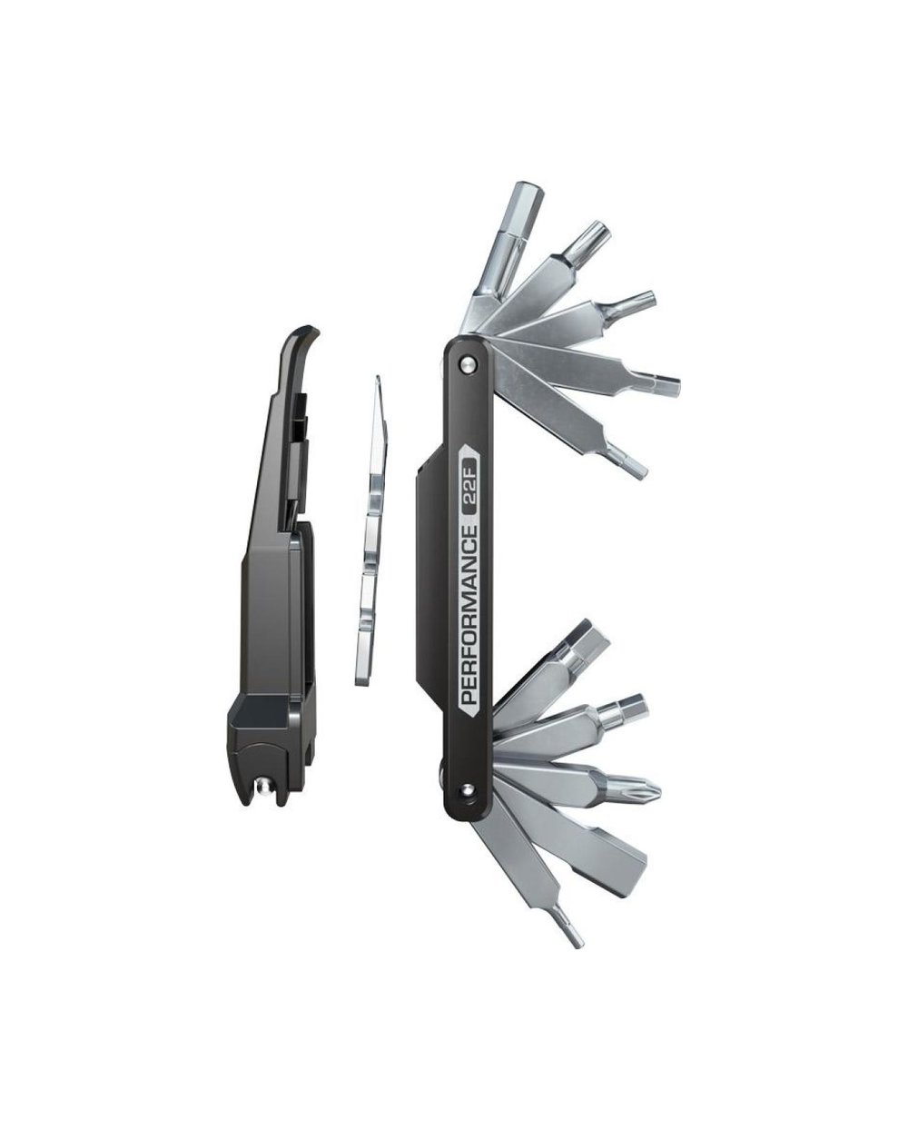 Instrument compact cu 22 de funcții. Corp din aliaj durabil și ușor, biți din oțel călit. Include: - Cheie hexagonală 2 / 2,5 / 3 / 4 / 5 / 5 / 6 / 8 (cheie cu pedală). - Torx T10 și T25 - Șurubelniță cu cap plat SL5 - Șurubelniță Phillips PH2 - Rivesor de lanț pentru roți 9-12 cu suport de lanț - Cheie pentru furcă 7 / 8 / 9 / 9 / 10mm - unelte pentru demontarea supapelor - unealtă de asamblare - distanțier pentru plăcuțele de frână - cheie de centrare Greutate: 176g.
