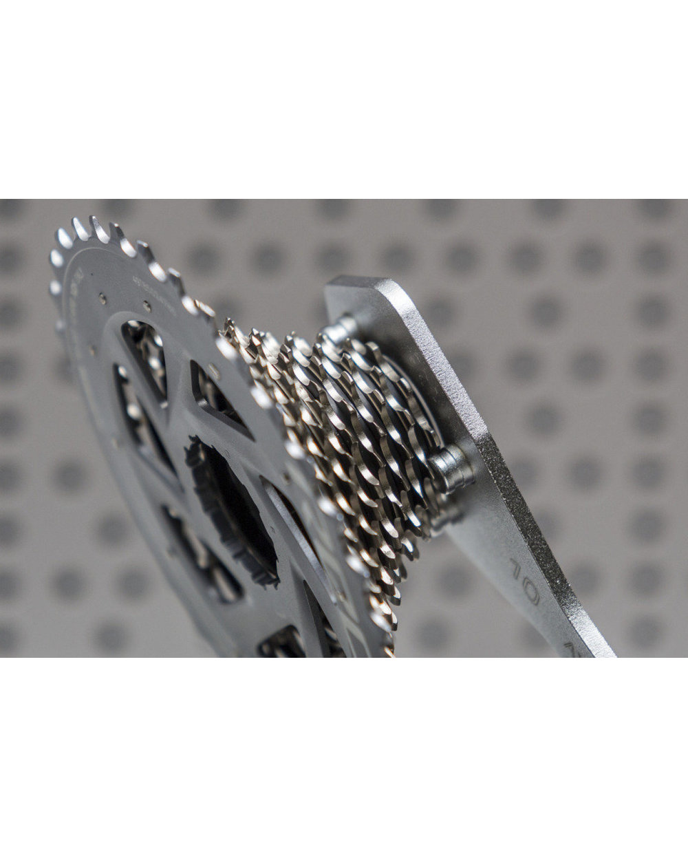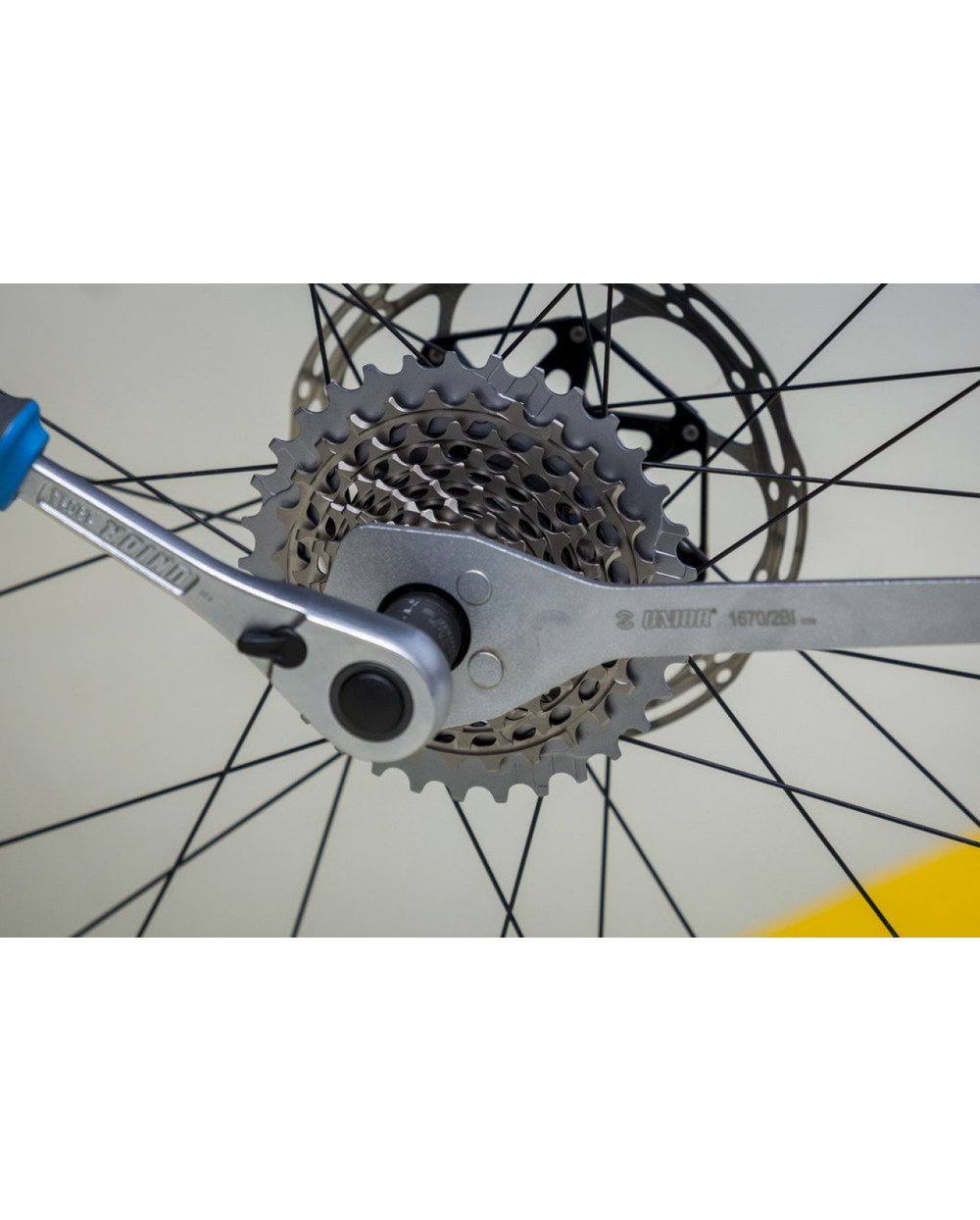 - Un înlocuitor modern pentru biciul de lanț tradițional. Pinii de pe unealtă se potrivesc în cel mai mic pinion de 10T de pe casetă și îl mențin în poziție, în timp ce gaura din mijloc permite accesul ușor la inelul de fixare a casetei. .