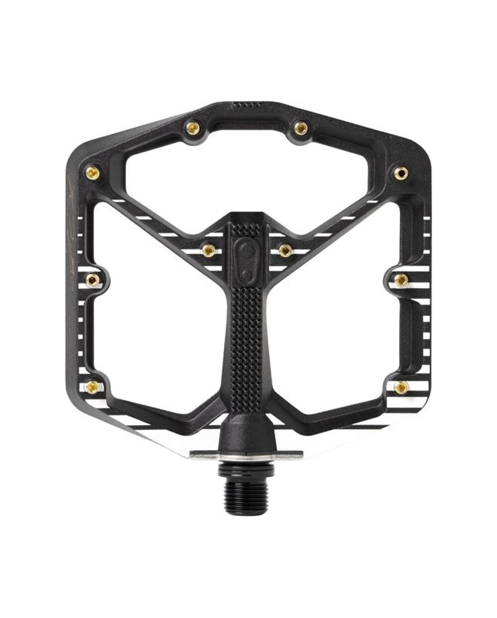 Pedală cu platformă superioară în două dimensiuni pentru diferite mărimi de pantofi. Profil minim 11-13 mm. Greutate 345 g PLATFORMA aluminiu 6061-T6 (100 x 100 mm, pentru mărimi de încălțăminte 37-43) OSA Oțel Cr-Mo 435 LENT INTERIOR Bucșe glisante Igus LL Rulment exterior Bucșe glisante Igus LL PINS 10 pe fiecare parte, înlocuibile TESTE ÎN MASS-MEDIA: http://www.bikeandride.cz/2016/11/pedaly-CrankBrothers-stamp-large-prakticke-predstaveni/