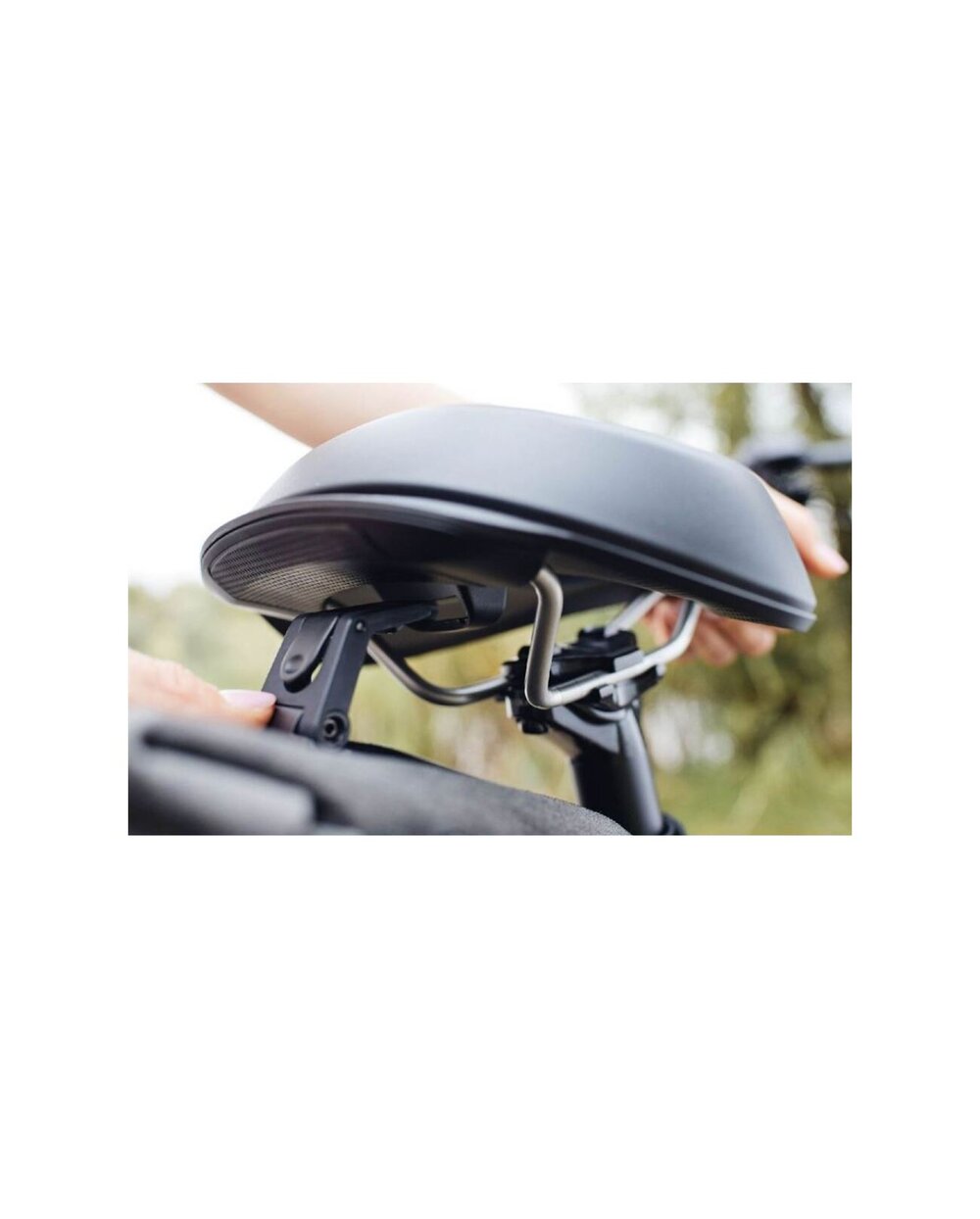 Sistem de cleme integrat: O clemă integrată pe spatele șeii vă permite să atașați o geantă de șa sau alte accesorii.