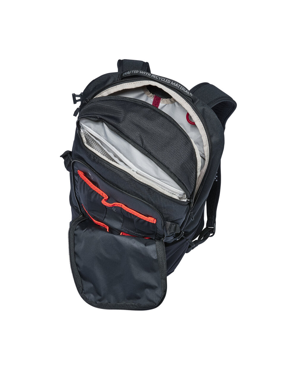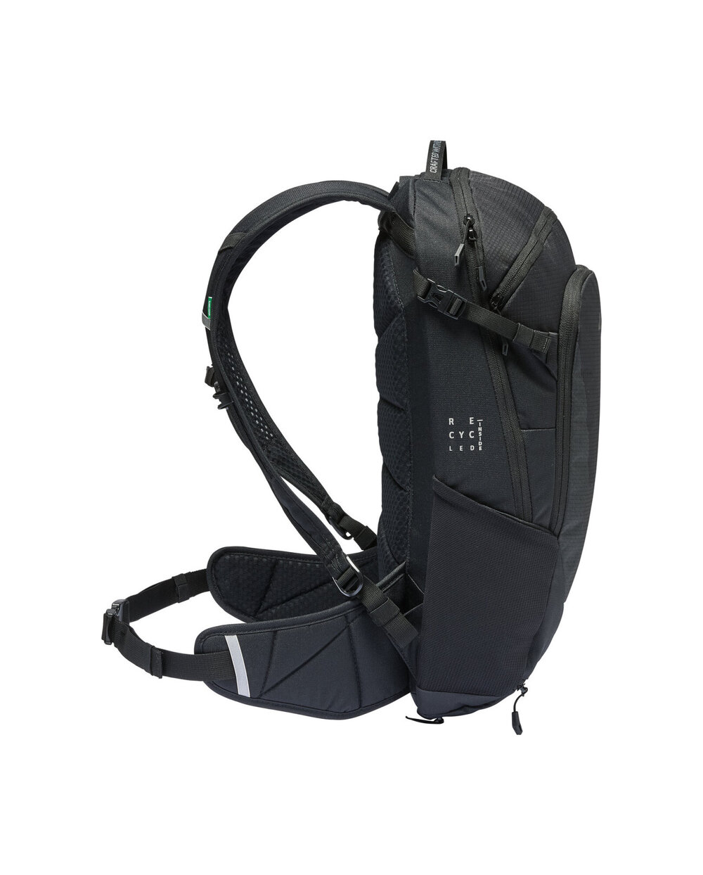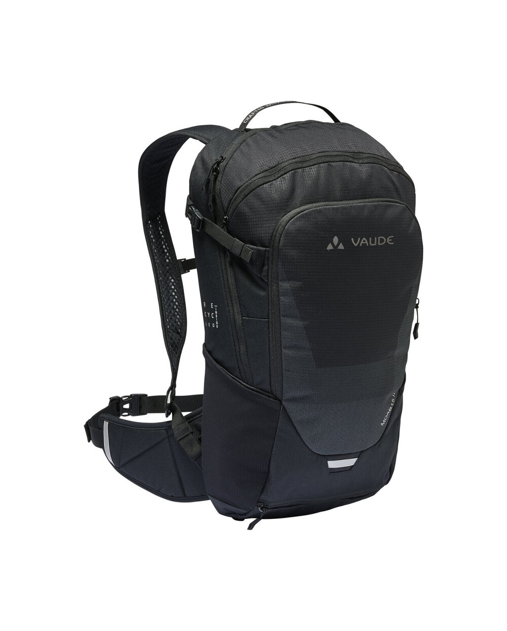 - ergoshape - curele de umăr ergonomice și respirabile - Vent Bike Active - Sistemul de suspensie oferă stabilitate și confort, asigură o adaptare perfectă și o ventilație bună cu o captură mai groasă în zona lombară pentru a elibera puncte de presiune - O centură lombară confortabilă trage centrul de gravitație al rucsacului spre spate și, împreună cu curelele ergoshape, asigură un atașament perfect cu o libertate optimă de mișcare a bicicletelor - În fața compartimentului principal se află un buzunar interior cu fermoar, un compartiment de scule, suport pentru cască, aripa dreaptă a centurii lombare, buzunare de întindere pentru ochi, compartiment de hidratant separat, curele de compresie pe părți, curea de ochelari de soare, acoperiș de ploaie în compartiment inferior și reflexiv separat și reflexive separate, compartiment inferior separat și reflexive - Finisajul Eco protejează rucsacul de apă și pete