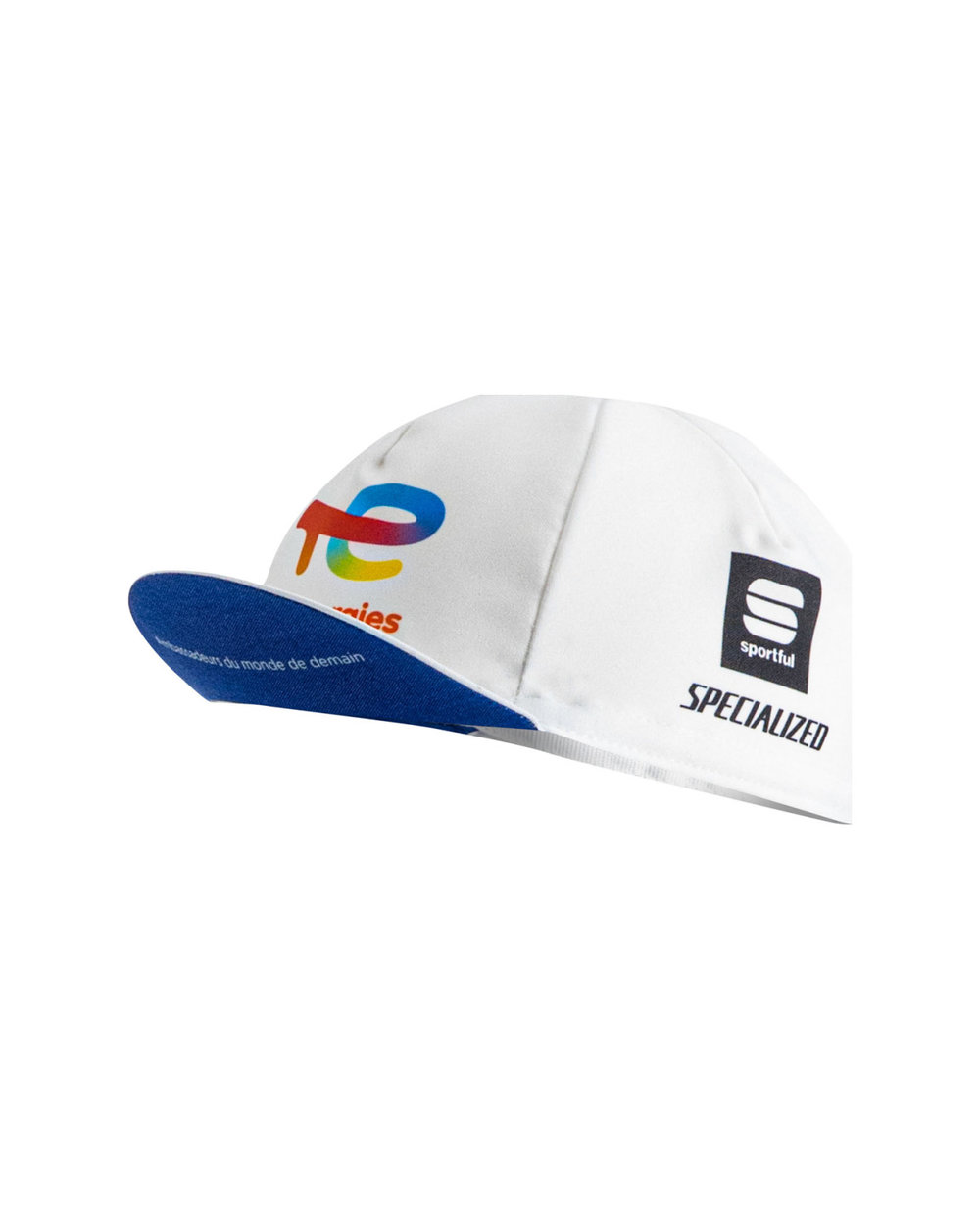 Capace de bicicletă profi tímu TotalEnergies în design albí..
