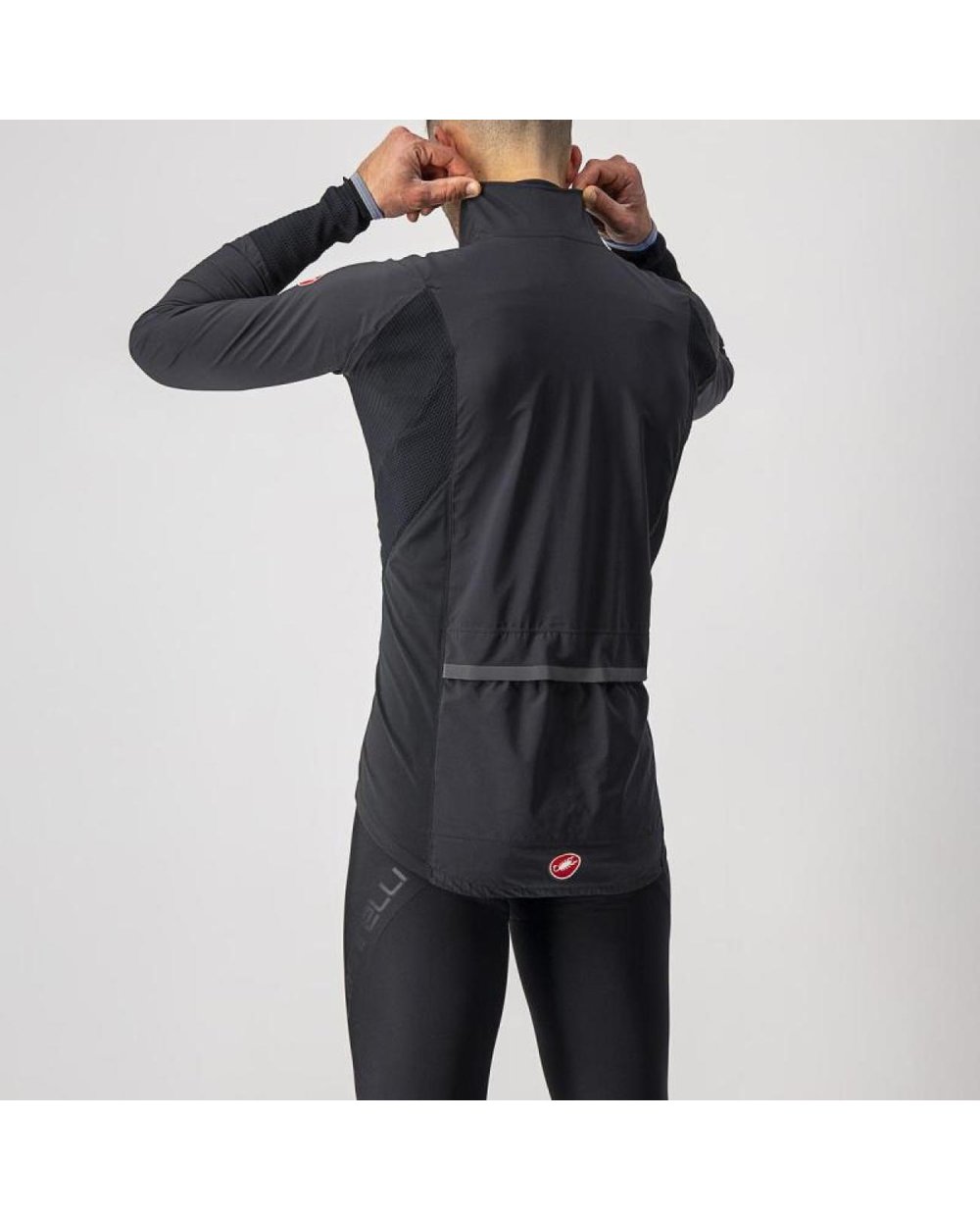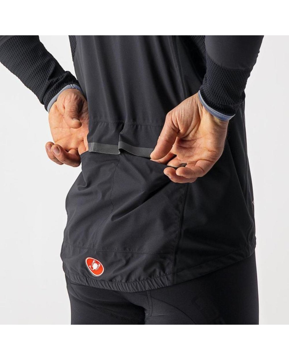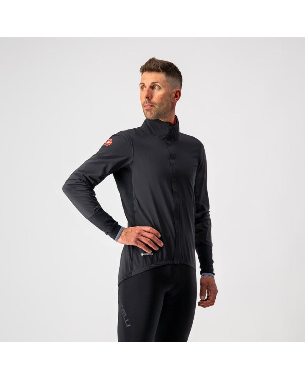 Am folosit GORE-TEX® cu o greutate mai mare pentru a vă oferi mai multă durabilitate. I-am dat un pic mai multă croială, dar nu atât de mult încât să fluture în vânt. Am reușit să facem acest lucru cu ajutorul unor panouri elastice la subsuori, astfel încât să puteți încă să pedalați într-o poziție agresivă. Am adăugat aceleași panouri elastice în jurul încheieturilor, astfel încât să o poți pune și scoate chiar și atunci când porți mănuși Diluvio. Iar dacă chiar ai nevoie să-ți umpli buzunarele, am adăugat panouri elastice și pe laterale pentru a-ți facilita acest lucru.