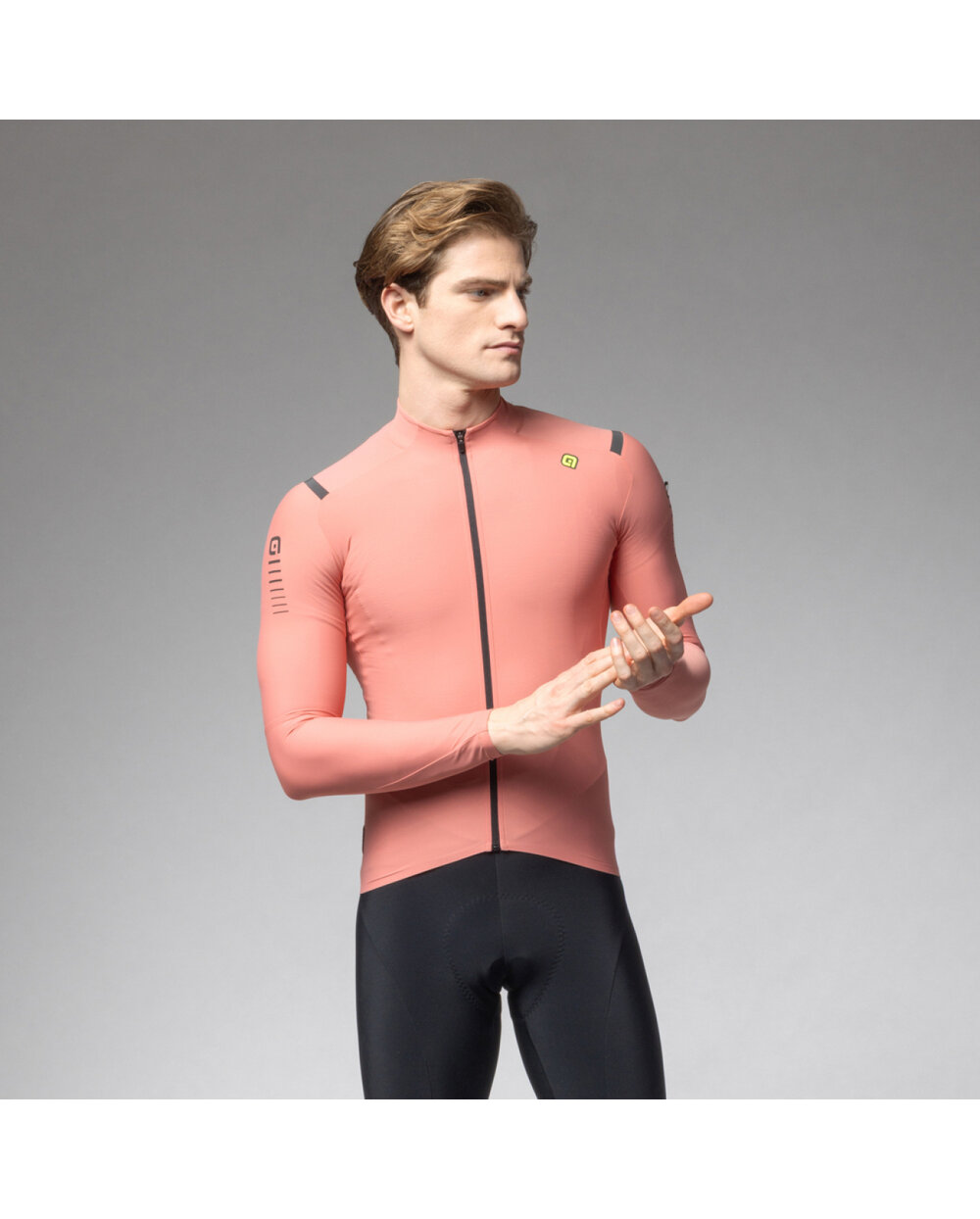 Tricou de cilism pentru iarnă cu mânecă lungă Alé WARM RACE roz