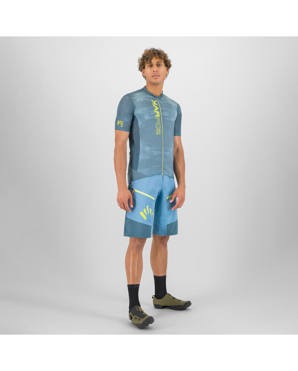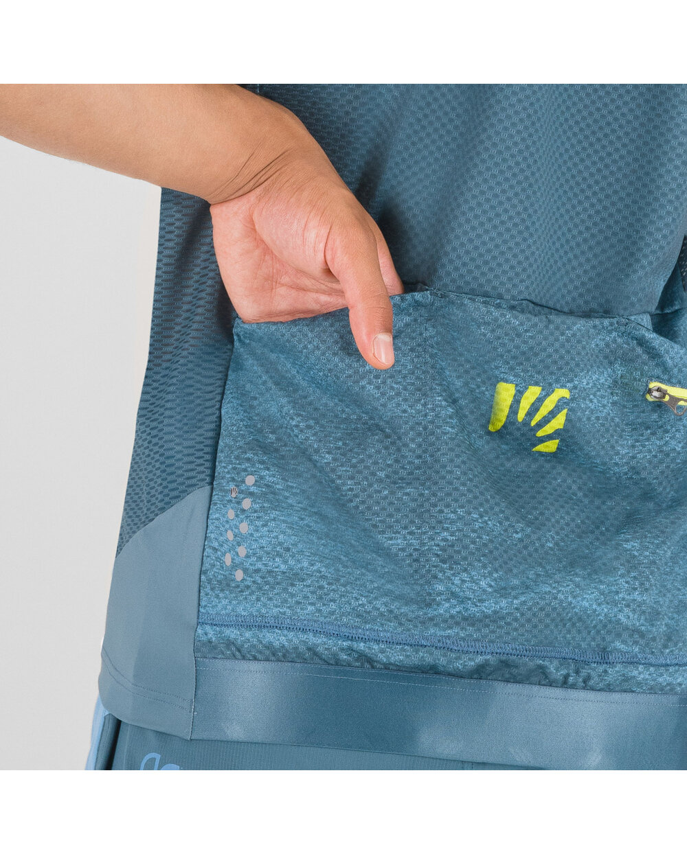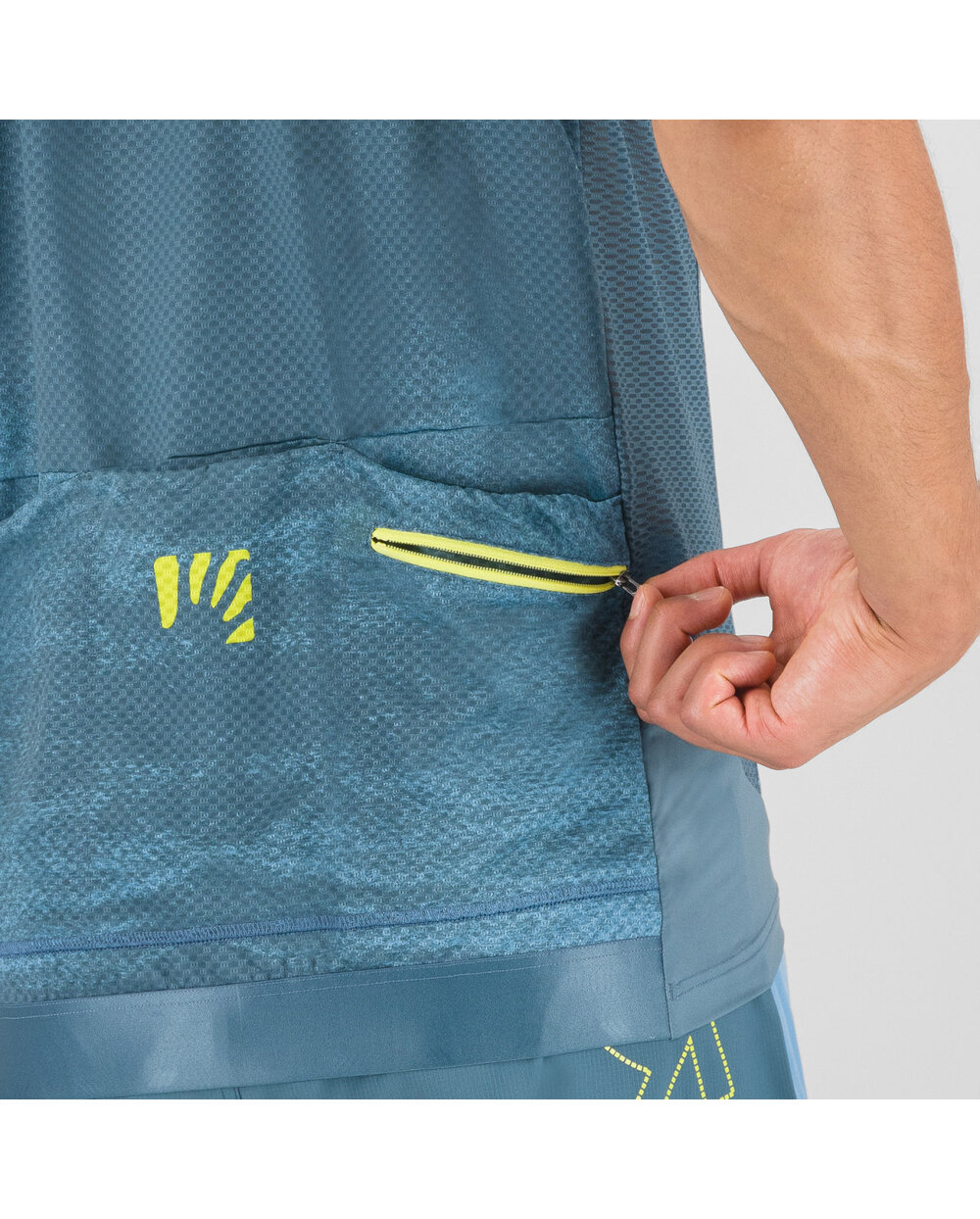 Tricou MTB de vară Karpos Green Fire este realizat dintr-o pereche de materiale funcționale care oferă un confort optim chiar și în timpul mersului pe tot parcursul zilei. Pe față, există un material moale, elastic, care asigură o potrivire confortabilă. O mai bună drenare a transpirației de pe piele (chiar și atunci când purtați un rucsac) este asigurată de material perforat pe laterale, mâneci și spate. Pentru a depozita toate lucrurile necesare, tricoul este echipat cu 3 buzunare spațioase și un buzunar interior mai mic.