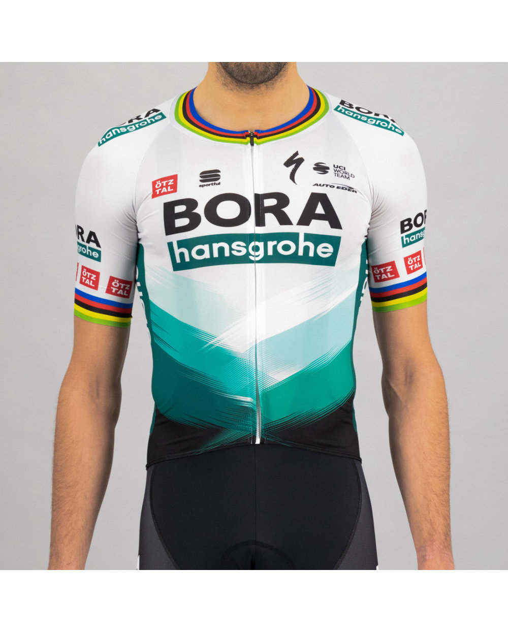 Sportful Bomber este conceput pentru cicliștii profesioniști. Are proprietăți aerodinamice excelente, confirmate de testele din tunelul de vânt. Nu conține elemente superflue care ar putea încetini ciclistul sau reduce viteza. Partea din față este prevăzută cu un fermoar Camlock acoperit pentru o închidere/deschidere ușoară, chiar și cu o singură mână. În partea inferioară a spatelui, există un buzunar transparent din plasă pentru štartanéacute; astfel încât nu este nevoie să îl lipiți sau să îl atașați de tricou..