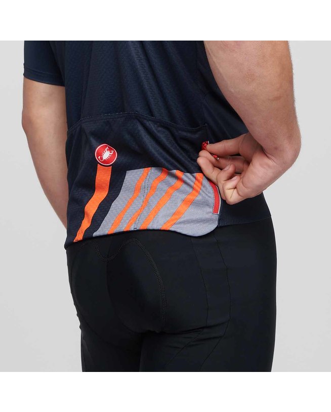 TRICOU PENTRU CURSE EPICETricoul este perfect pentru zilele tale mari petrecute în șaua bicicletei. Este o piesă de înaltă performanță, orientată pe confort și utilitate, nu doar pe aerodinamism și minimalismul profesional.Țesătura principală este un amestec din poliester și Lycra® pentru o aderență pe corp și control al umidității perfecte. Baza este de fapt același material Velocity Rev3 pe care CASTELLI l-a folosit pe tricoul lor Aero Race, dar au folosit cu aproximativ 20% mai mult pentru performanțe mai universale și pentru un suport mai bun al buzunarelor. A fost folosit material mesh 3D pe spate, precum și pe panourile laterale plate. Buzunarele sunt puțin mai mari decât buzunarele de la tricourile lor de curse, ceea ce le crește capacitatea și au adăugat un buzunar cu fermoar pentru chei și bani. Au folosit fermoar YKK® Vislon® pentru un acces mai bun la închidere sau deschidere și o bandă elastică GIRO 3 în jurul taliei care ajută la distribuirea greutății. Croiala mânecilor este mai lungă.