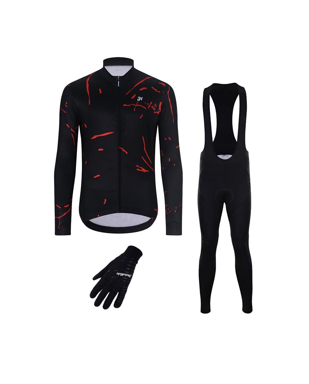 Tricou și pantaloni de iarnă de ciclism HOLOKOLO PASSION WINTER negru/roșu