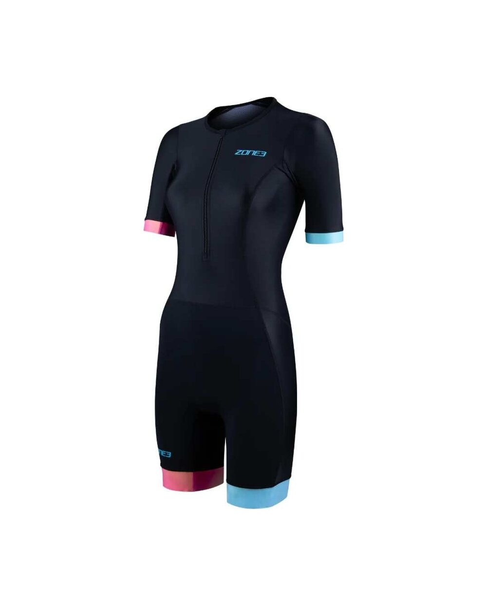 Trisuit cu mânecă scurtă Zone3 Activate+ pentru femei este un costum de triatlon reglat pentru performanță care combină confortul, funcționalitatea și stilul modern pentru antrenamente și zilele de cursă. Acest model reprezintă o versiune îmbunătățită a popularei linii Activate+, cu accent pe respirabilitate, uscare rapidă și gestionarea optimă a umidității, datorită căreia păstrați o senzație de uscat și confortabil în timpul fiecărei discipline. Este fabricat din materiale reciclate de înaltă performanță, care oferă flexibilitate, durabilitate și o gamă largă de mișcare fără restricții. Partea din spate cu un panou din plasă reciclată îmbunătățește fluxul de aer și elimină transpirația, lucru pe care îl veți aprecia mai ales în timpul sesiunilor de antrenament mai solicitante sau pe vreme mai caldă. Datorită mânecilor scurte, modelul oferă o acoperire mai bună și o aerodinamică fără compromisuri. Tri-costumul este echipat cu o inserție Tri-Lite amplasată atent, care oferă confort în timpul părții de ciclism fără restricții în timpul alergării și înotului, și mânere din silicon pe picioare care țin pantalonii ferm în poziție, fără mișcări nedorite. Fermoarul elastic din față permite îmbrăcarea ușoară și o ventilație suplimentară după cum este necesar, în timp ce buzunarul elastic din spate oferă spațiu practic de depozitare pentru geluri energetice sau obiecte mici. Datorită combinației de materiale funcționale, croială ergonomică și detalii tehnice, acest trisuit este alegerea ideală pentru triatleții care caută un echilibru optim între performanță, confort și durabilitate.