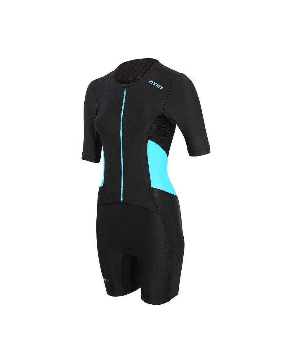 Costumul are maneci scurte care imbunatatesc aerodinamica si in acelasi timp ofera o mai buna protectie impotriva soarelui. Fermoarul frontal complet permite îmbrăcarea ușoară și o ventilație eficientă în timpul mersului cu bicicleta și al alergării. Materialul elastic și respirabil folosit este cu uscare rapidă, plăcut pentru corp și asigură o reglare optimă a temperaturii chiar și în timpul performanțelor mai lungi.