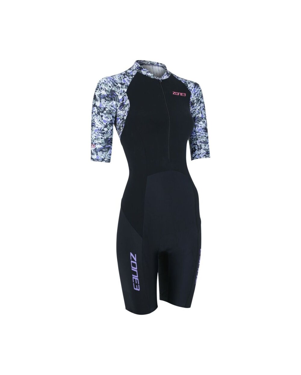 Zone3 Lava Short Sleeve Trisuit este un costum de triatlon premium pentru femei, conceput pentru curse solicitante și sesiuni de antrenament mai lungi. Acest model provine din colecția premiată Lava, care este rezultatul dezvoltării și testării pe termen lung în tunelul de vânt și în rândul sportivilor profesioniști. Trisuitul Lava combină panouri aerodinamice avansate, tratamente hidrofuge și materiale tehnice care îmbunătățesc performanța în toate cele trei discipline - înot, ciclism și alergare.