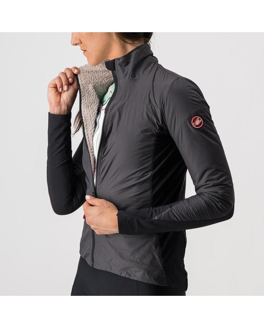 Jachetă rezistentă la vânt de ciclism CASTELLI UNLIMITED W PUFFY gri