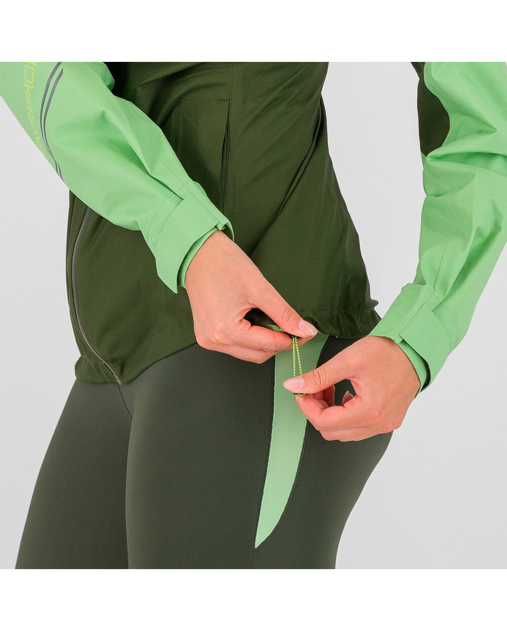 Șnurul din talie permite ajustarea individuală a jachetei și împiedică pătrunderea vântului în interior.