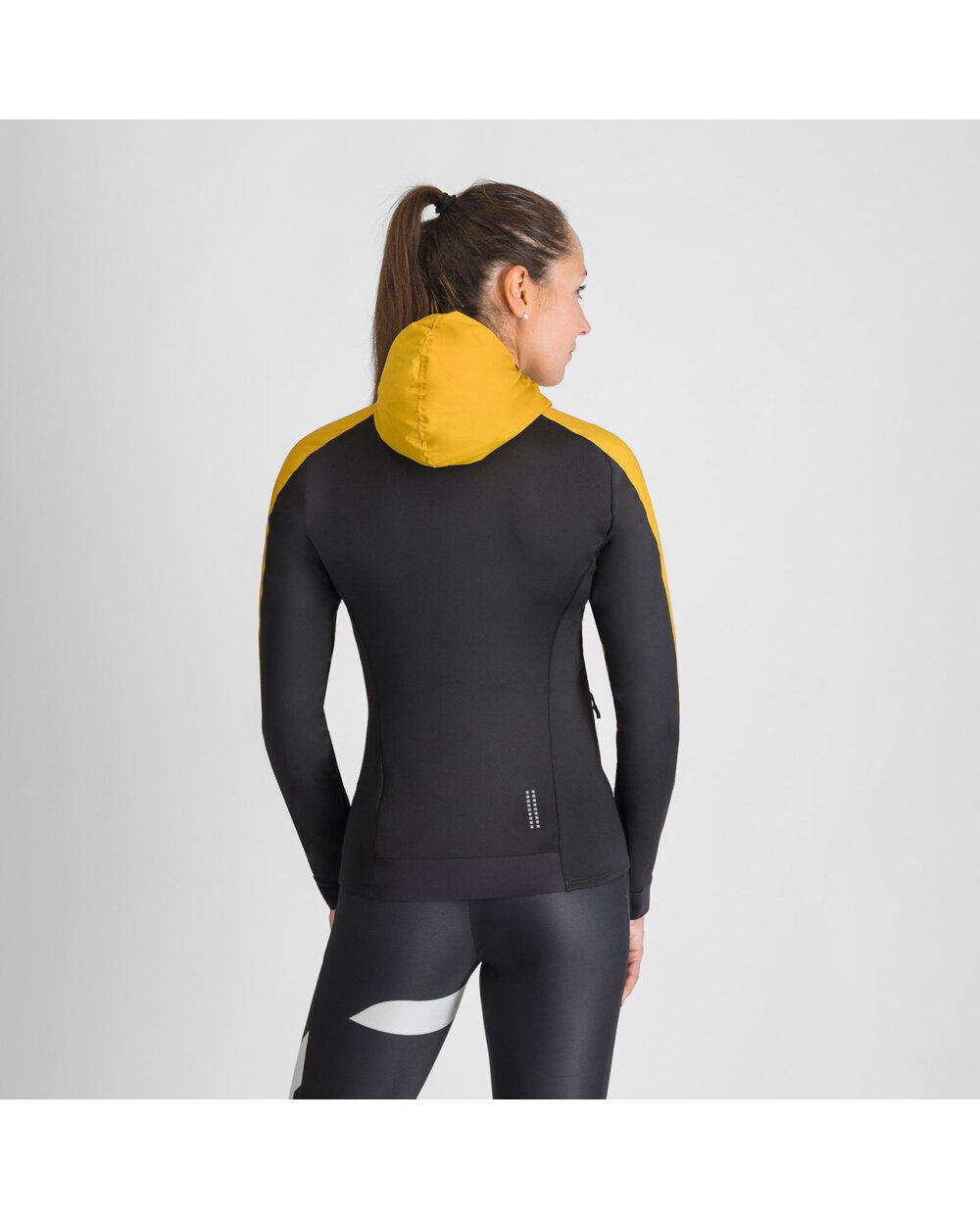 • Elementele reflectorizante de pe spate măresc vizibilitatea sportivului în condiții de lumină scăzută, îmbunătățind astfel siguranța în timpul antrenamentului de iarnă la începutul serii.