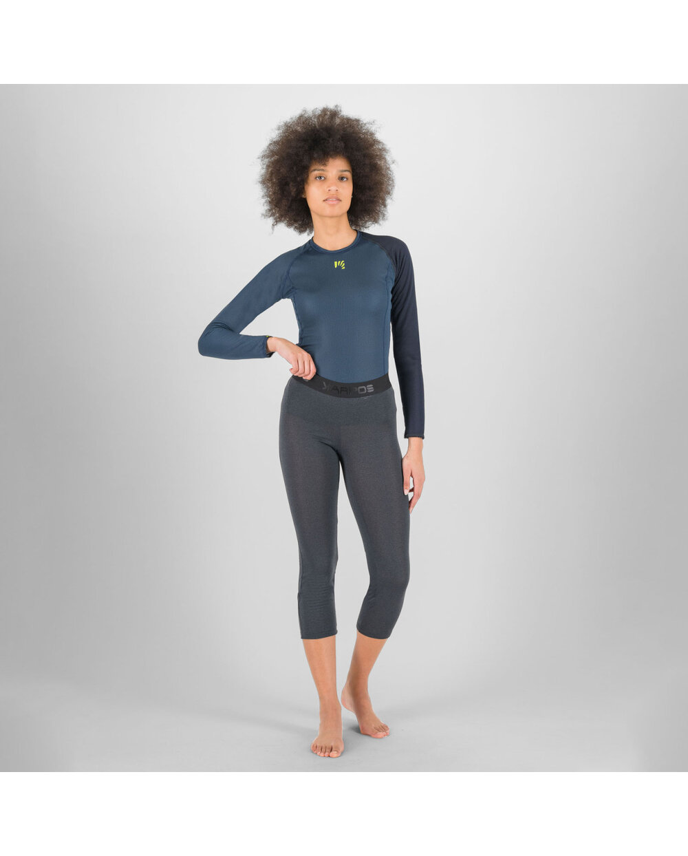 Leggings termic 3/4 de iarnă pentru femei Karpos Dinamico reprezintă un prim strat confortabil de îmbrăcăminte pentru sport și activități în aer liber. Sunt realizate din material elastic funcțional Biopile, care are proprietăți excelente de izolare termică, se usucă rapid și asigură o purtare confortabilă.