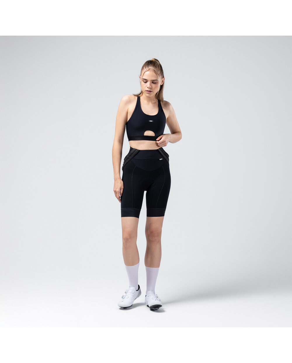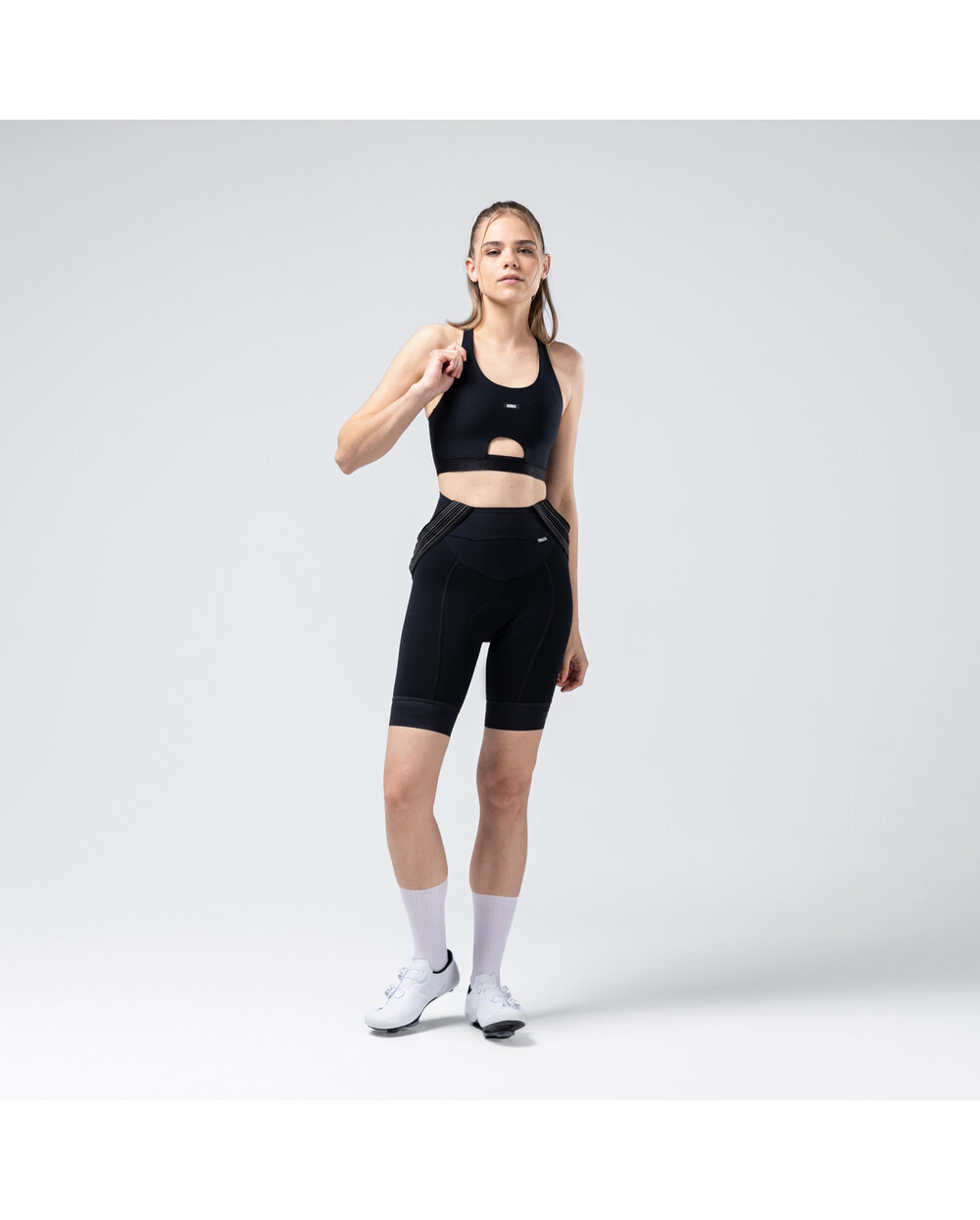 O potrivire perfectă este asigurată de banda elastică Jacquard din partea inferioară, care oferă suport suplimentar și subliniază silueta feminină. Sutienul are, de asemenea, o gaură frontală pentru senzorul de ritm cardiac, permițând mișcarea liberă și măsurarea precisă a performanței. Pentru o mai mare versatilitate, sunt incluse inserții detașabile, care permit personalizarea în funcție de preferințele ciclistului.
