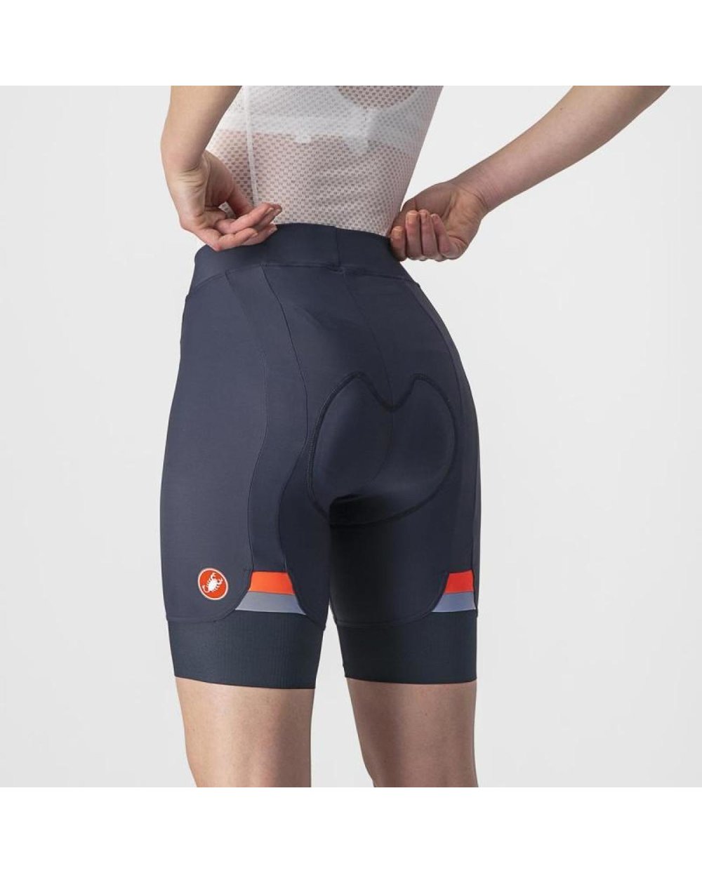 La CASTELLI suntem obsedați de pantaloni. Pentru că este cea mai importantă piesă vestimentară și este dificil să îi faci pe cei potriviți . Deși pantalonul scurt Prima este unul dintre pantalonii noștri de bază, puteți vedea că nici aici nu facem compromisuri în ceea ce privește confortul și performanța. Începe cu căptușeala Kiss Air² specifică femeilor. Însuși numele său face aluzie la procesul de îmbunătățire care a început cu căptușeala moale Kiss, care a fost îmbunătățită cu un flux de aer crescut (Air), iar apoi, în ultima actualizare, am îmbunătățit-o din nou, folosind cea mai moale țesătură de până acum (2). Este gata pentru următoarea plimbare importantă, fie că este acasă sau în aer liber.