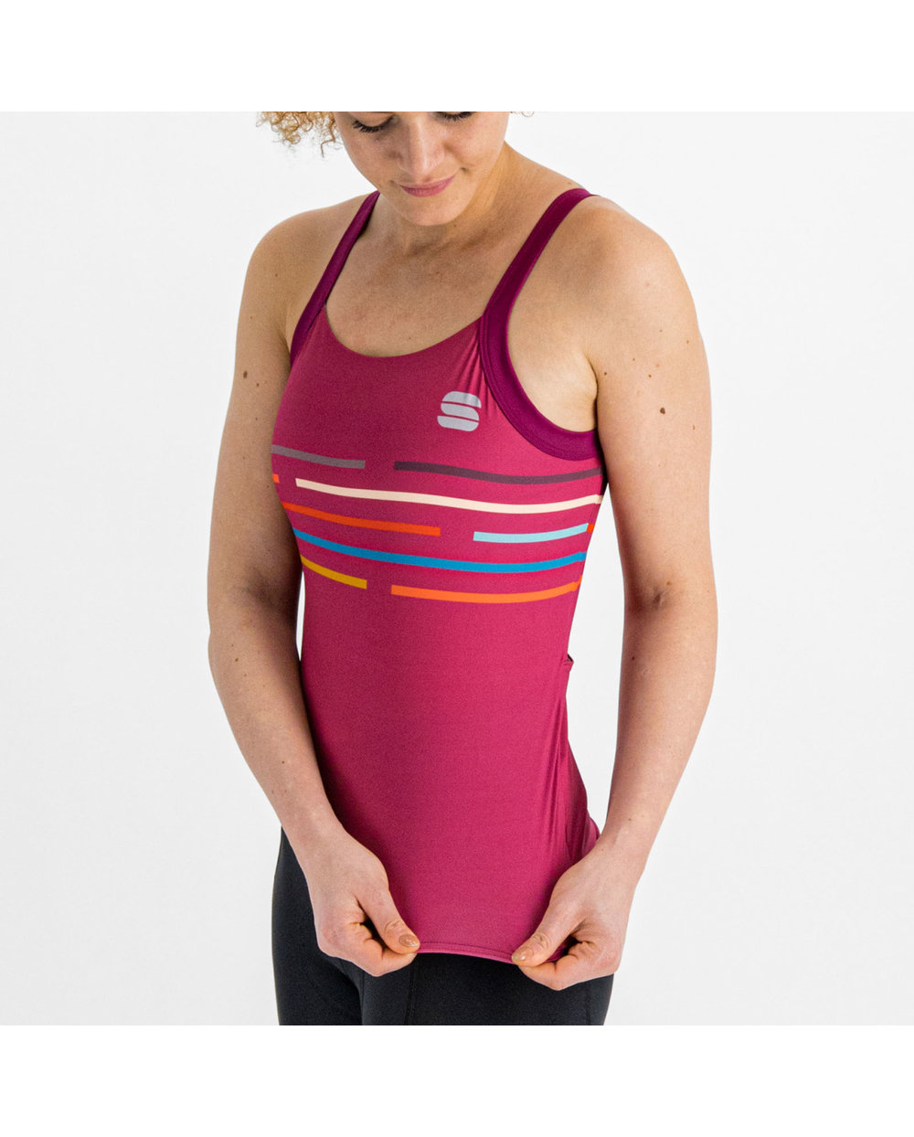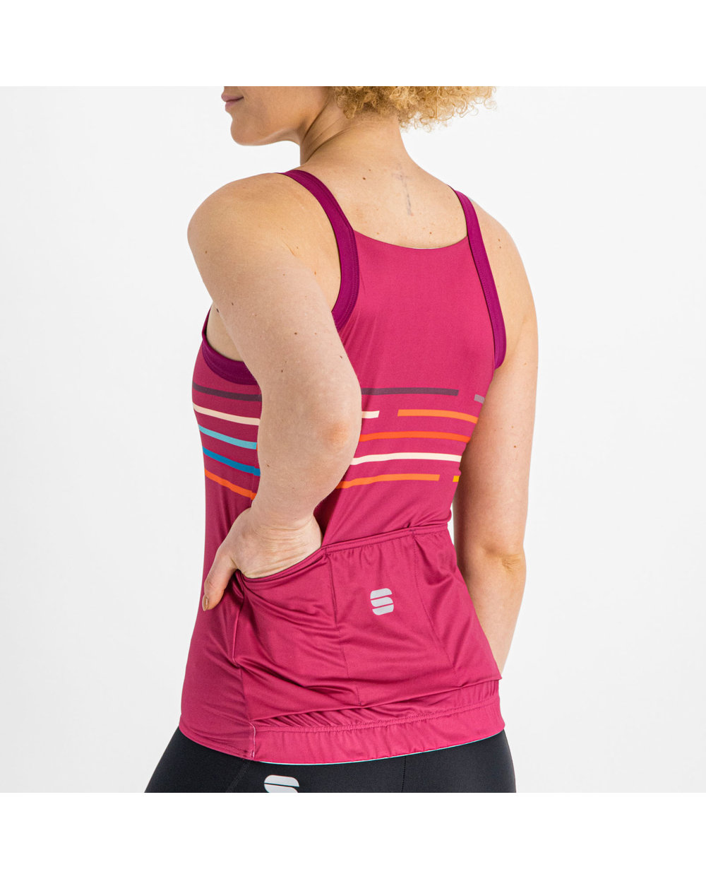 Topul Sportful Vélodrome bikeý cu úzky bretele este ideal pentru zilele caldeúliniștiteý de varăý. Acesta are o croială simplăým, un material elasticýným respirabilým și un sutien všite&. Trei buzunare la spate și un tiv elastic împiedică partea de sus să se ridice în timpul călătoriei. .