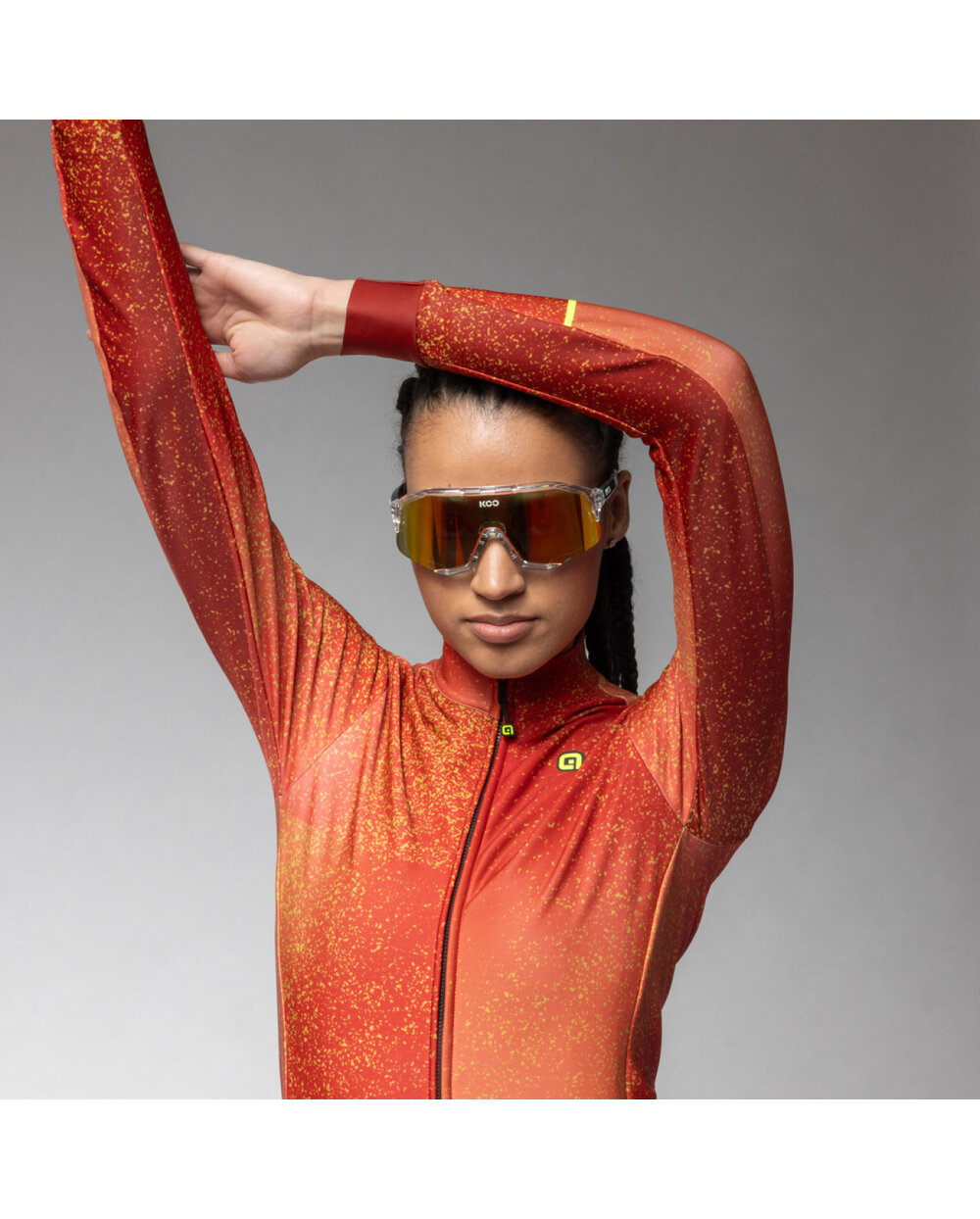Tricou de cilism pentru iarnă cu mânecă lungă Alé PR-E STELLAR LADY roșu