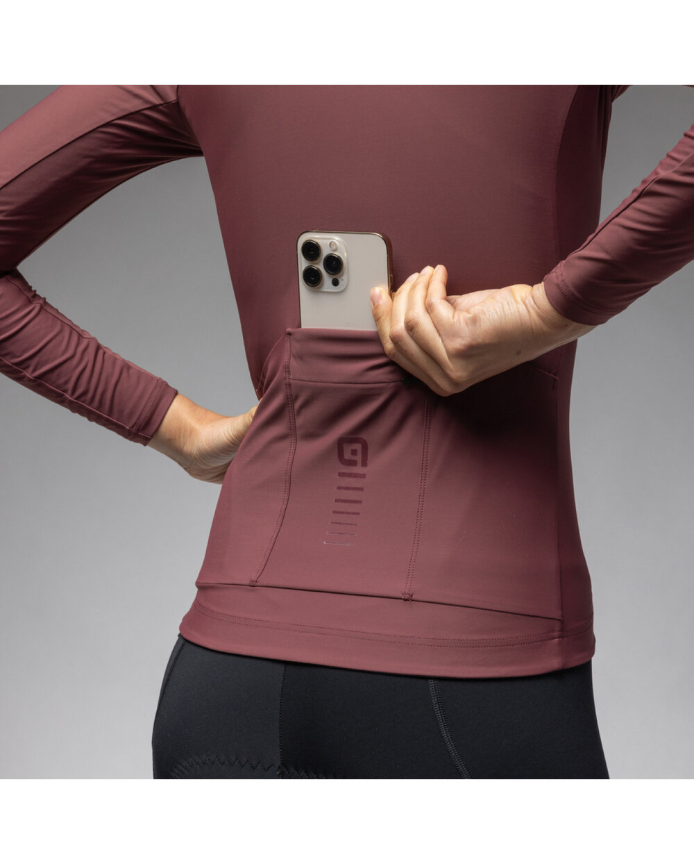Tricou de cilism pentru iarnă cu mânecă lungă Alé R-EV1 WARM RACE 2.0 LADY maro