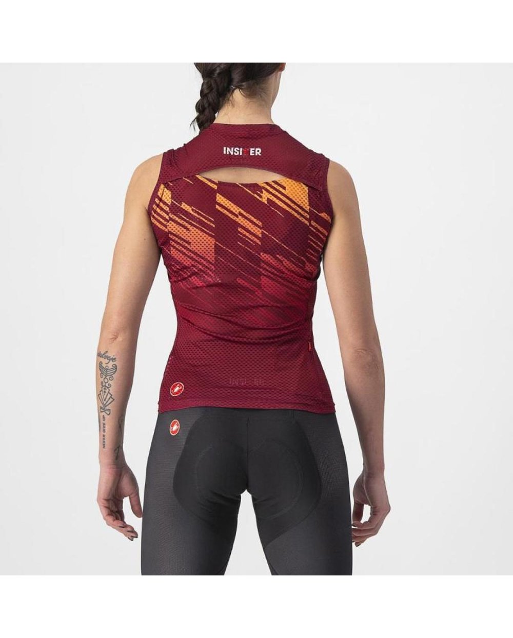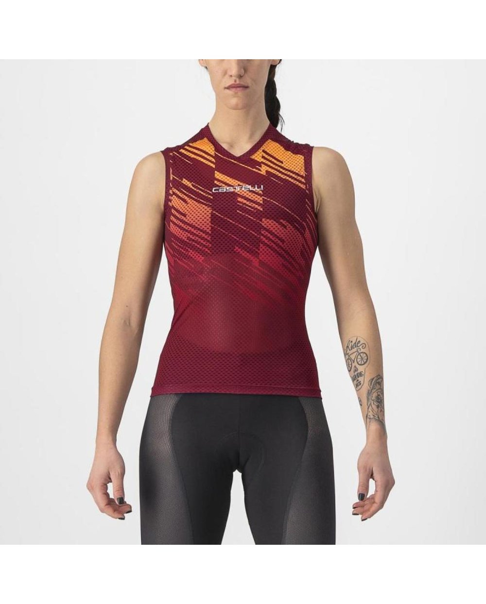 CE ESTE / CARACTERISTICI PRODUSUTUTop pentru ciclism de interior, pregătit pentru Zwift, peloton sau fitness. Vă menține răcoros și confortabil. Mășuță 3D ușoară 93% poliester / 7% elastan elimină umezeala și se usucă rapid.Tratament HEIQ Fresh Tech cu argint pentru controlul mirosurilor.Plasă semi-deschisă permite un flux de aer și o răcire maximă.Buzunar pe spate.Culoare: 010 negru, 421 burgundyTăieturi: XS - XLGreutate: 43 g. (S) Material Compoziție:93%poliester 7%elastan Am realizat acest top fără mâneci pentru a vă menține de fapt mai rece decât dacă nu ați purta nimic. Funcționează pentru că dispersează transpirația pe o suprafață mai mare pentru a ajuta la răcirea prin evaporare. Desigur, acest lucru nu vă va face să transpirați, dar vă va menține mai confortabil. Este în mod deliberat simplu și este tăiat aproape de corp și are un mic buzunar la spate. În cele din urmă, tratamentul natural anti-miros HEIQ Fresh Tech previne acumularea de mirosuri în hainele tale.