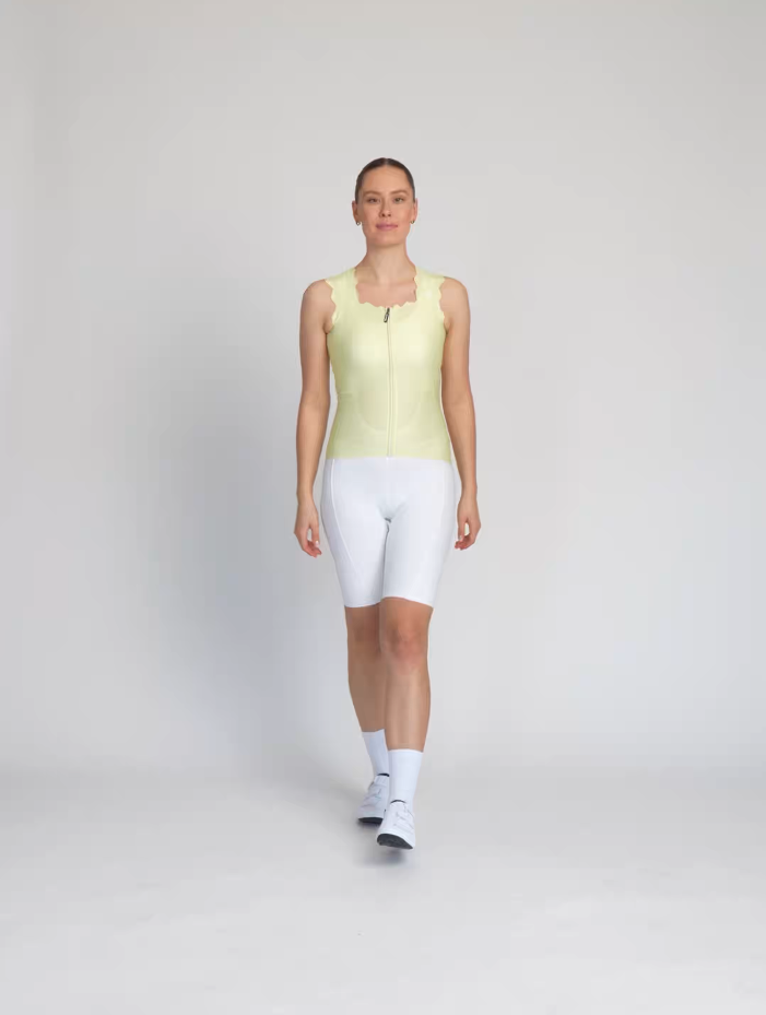Ai văzut-o încă? O nouă tendință este aici - iar marca Rivanelle a cedat complet în fața ei! Pur și simplu nu am rezistat acestui finisaj festonat. Tricou de ciclism fără mâneci, cu tiv perfect curbat, care aduce și farmec ținutelor de ciclism. Bretele ondulate mai groase și un decolteu pătrat, proporțiile umerilor mai plate și orice tip de decolteu. Nu-i lipsesc caracteristicile la care te-ai aștepta de la un tricou de calitate. Fermoar complet în față cu gheață de protecție pentru gât. Buzunar triplu cu buzunar de securitate cu fermoar. Tivul fără cusături, cu imprimeu anti-alunecare pe spatele tricoului.