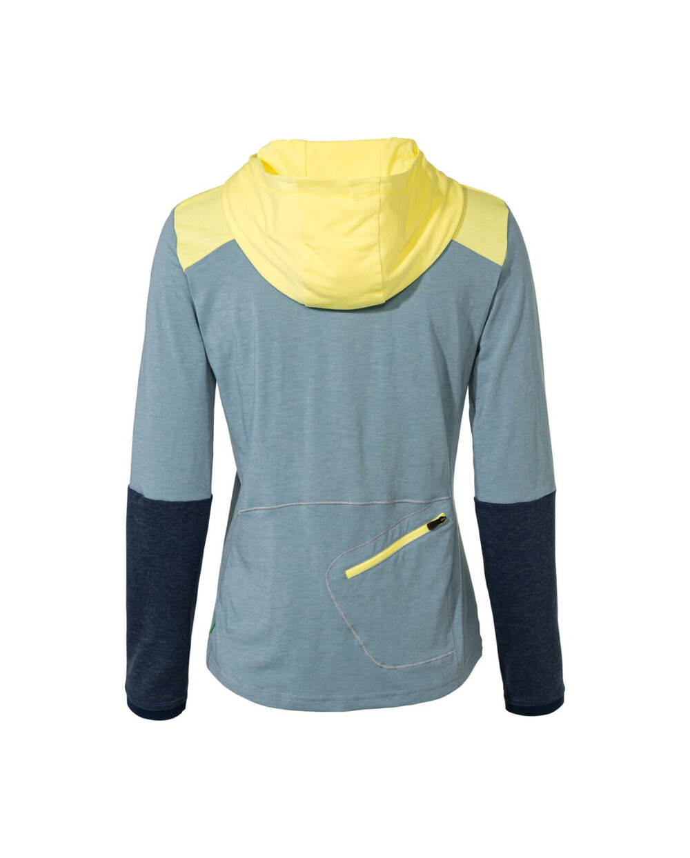 - 1 buzunar din spate cu un fermoar inversat, cu glugă, cusături plate, bloc de culoare