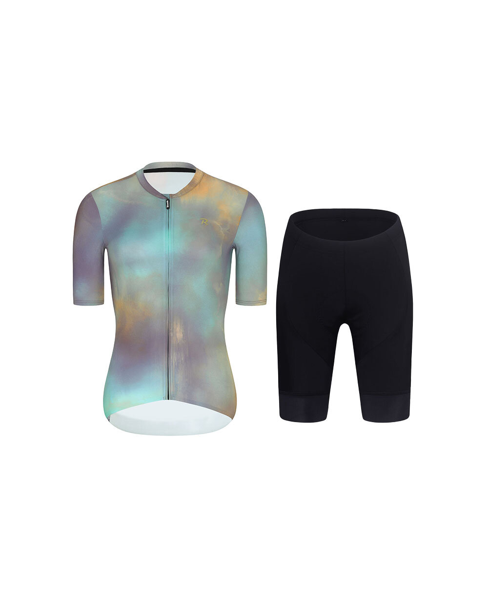 Setul de ciclism pentru femei Rivanelle combină un tricou elegant cu mâneci scurte COSMA, în nuanțe de violet și auriu, cu pantaloni scurți funcționali fără bretele DYNAMIC ELITE, de culoare neagră. Această combinație este concepută pentru ciclistele care caută o îmbinare perfectă între stil, confort și performanță în timpul plimbărilor de vară.