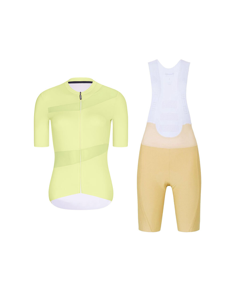Setul de ciclism elegant și funcțional al mărcii Rivanelle este alegerea ideală pentru femeile care doresc să îmbine eleganța, confortul și performanța ridicată pe bicicletă. Combinația dintre tricoul cu mâneci scurte GLAMOR, de culoare galbenă, și pantalonii scurți cu bretele NOVEL PRO, de culoare bej, creează o ținută modernă și sofisticată, care atrage atenția la prima vedere și, în același timp, face față și curselor solicitante.